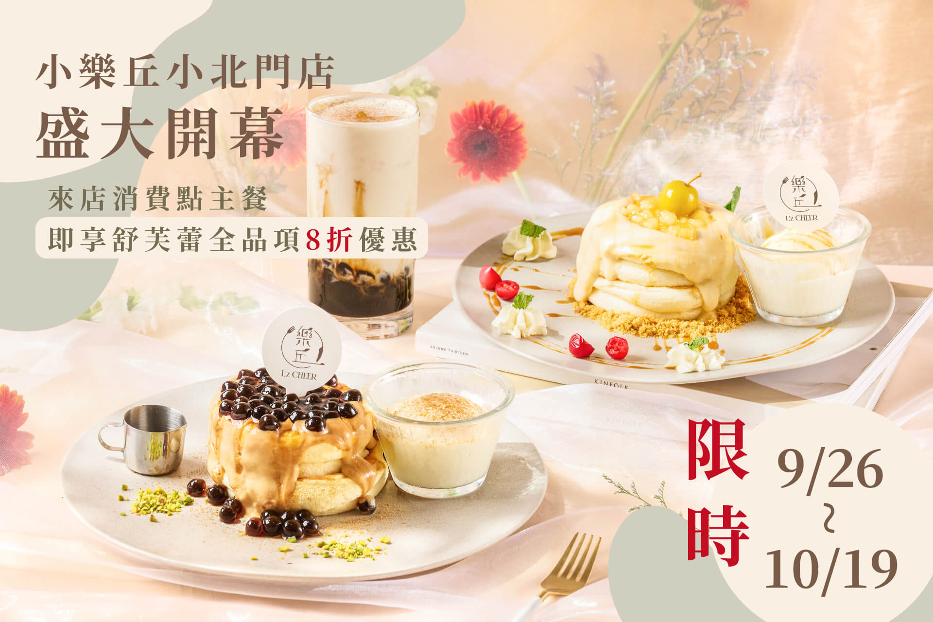 凡於9/26(五)-10/19(日)至小樂丘-新光小北門店消費點主餐,即享舒芙蕾全品項8折優惠